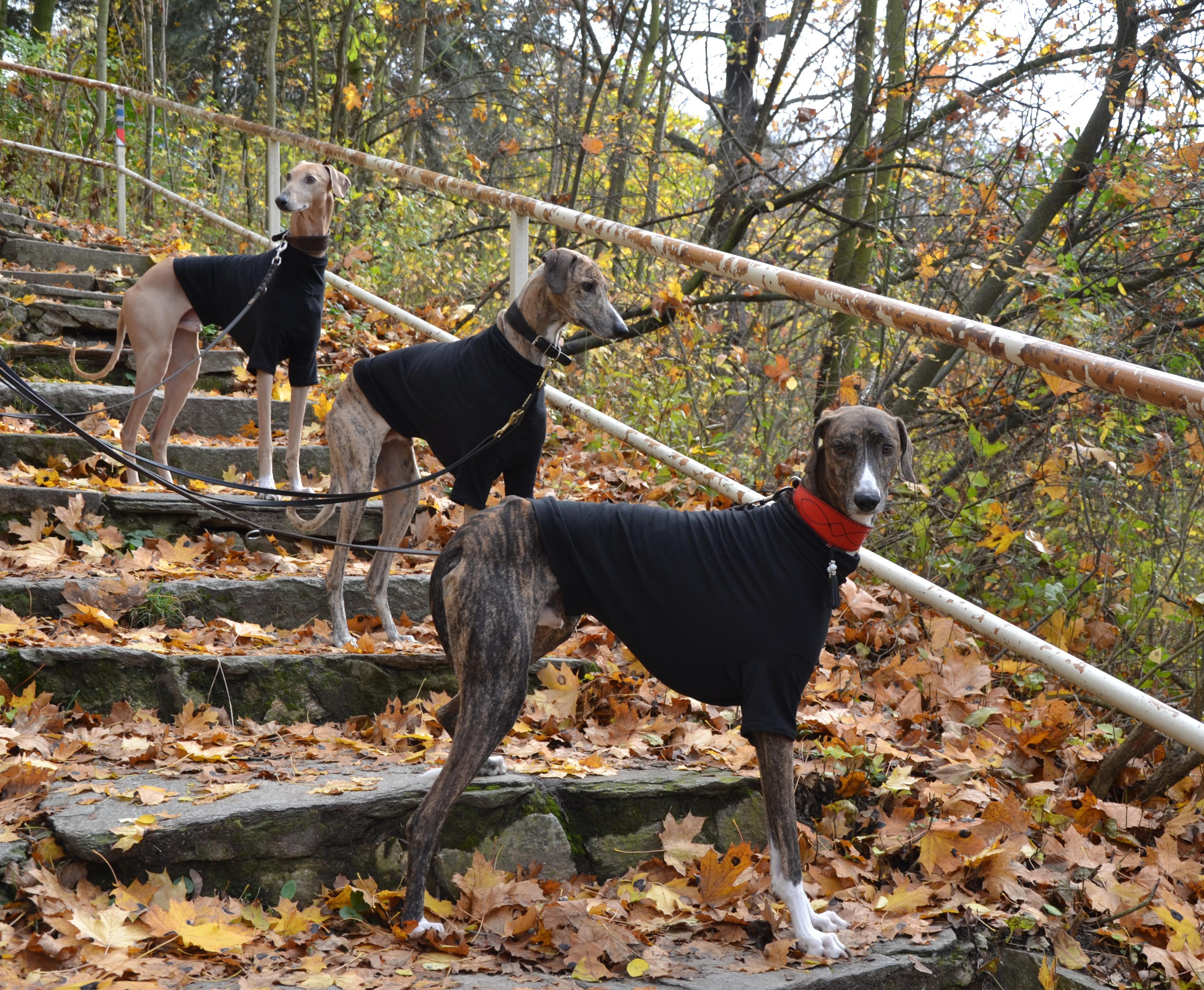 Veškeré oblečení je ušité z perfektních materiálů a vše je také možno objednat "on line" na přehledných webových stránkách. Vybrané kabátky a trička je možné objednat Vašemu chrtovi přímo i na míru.